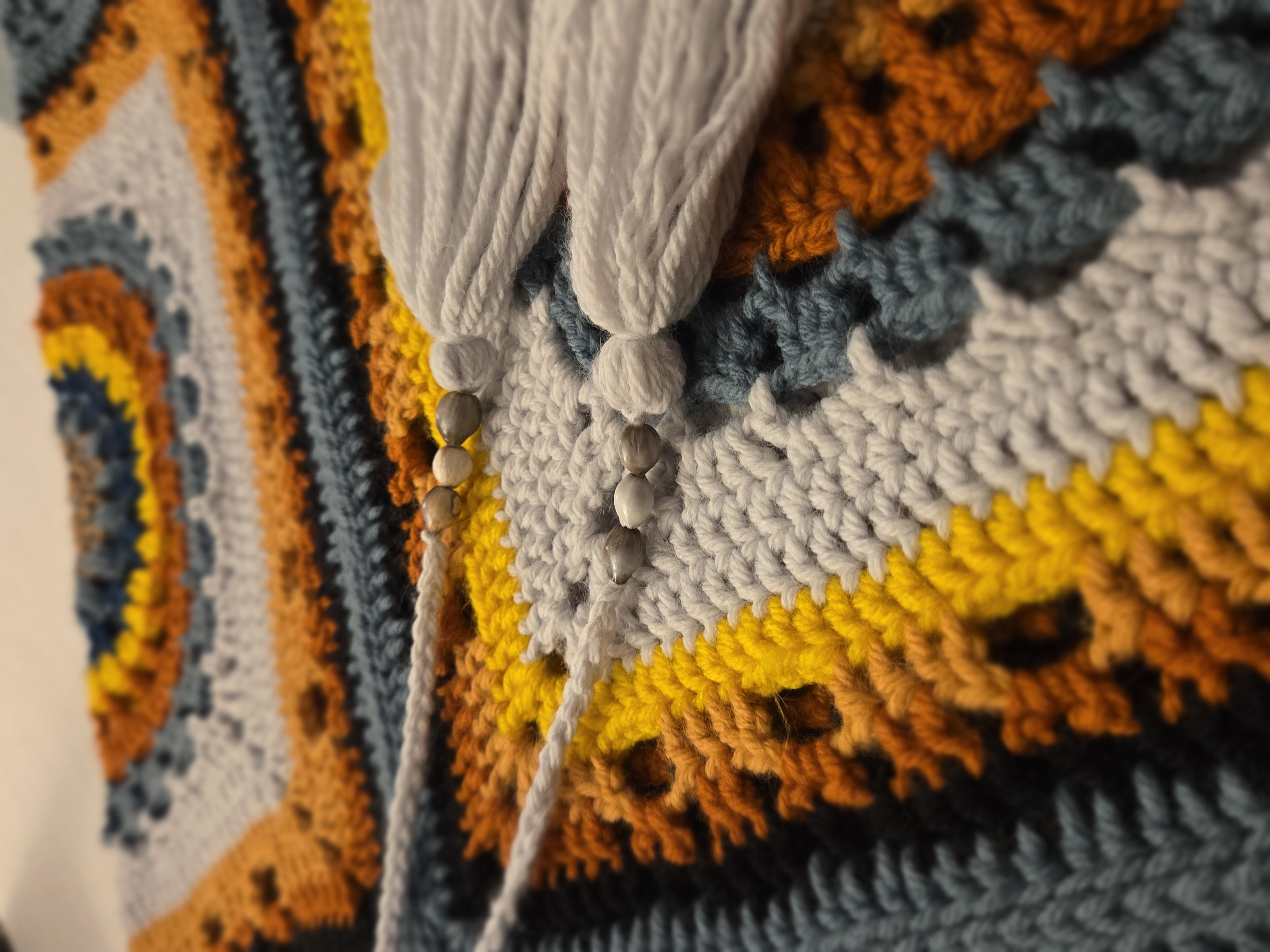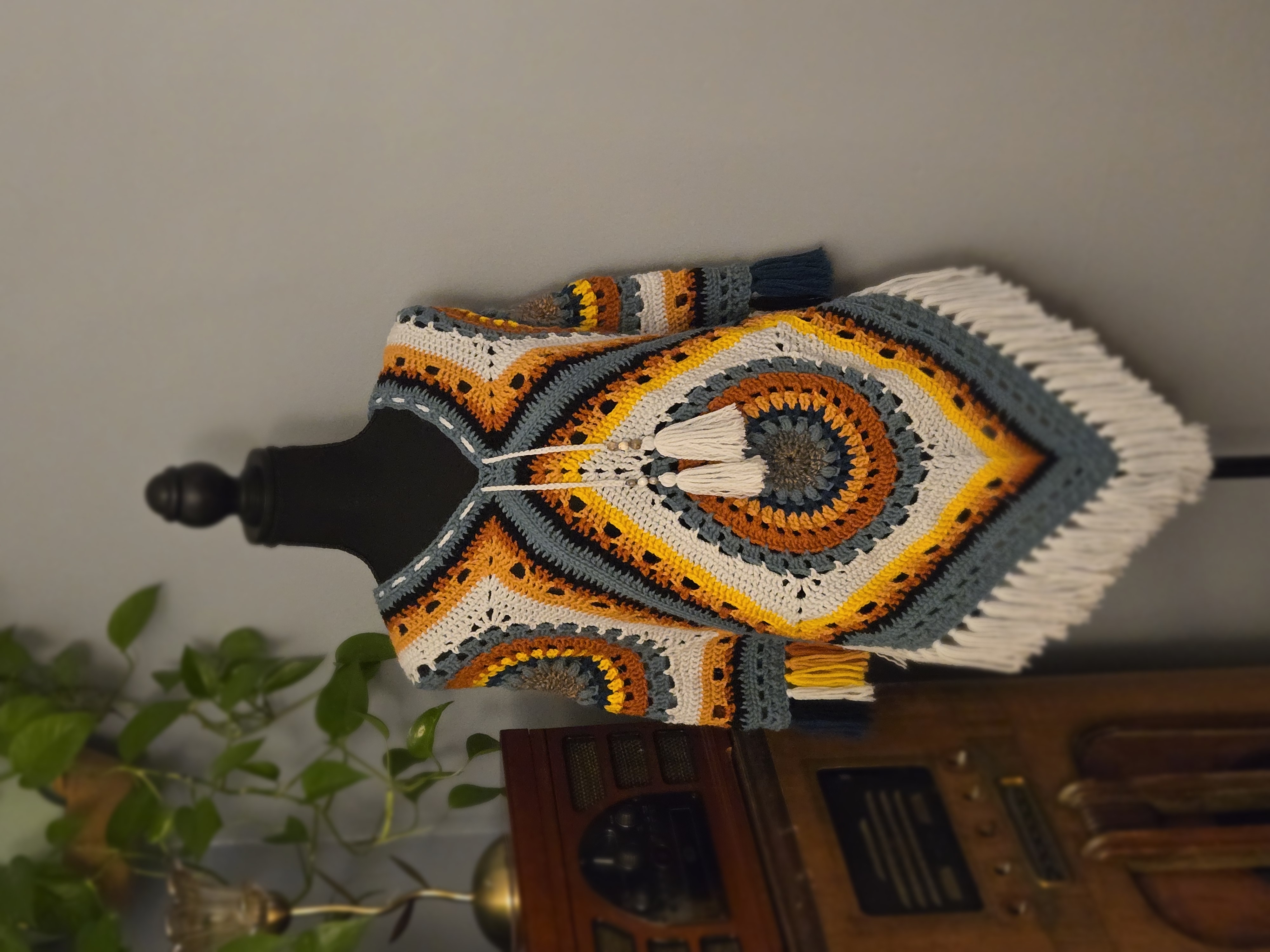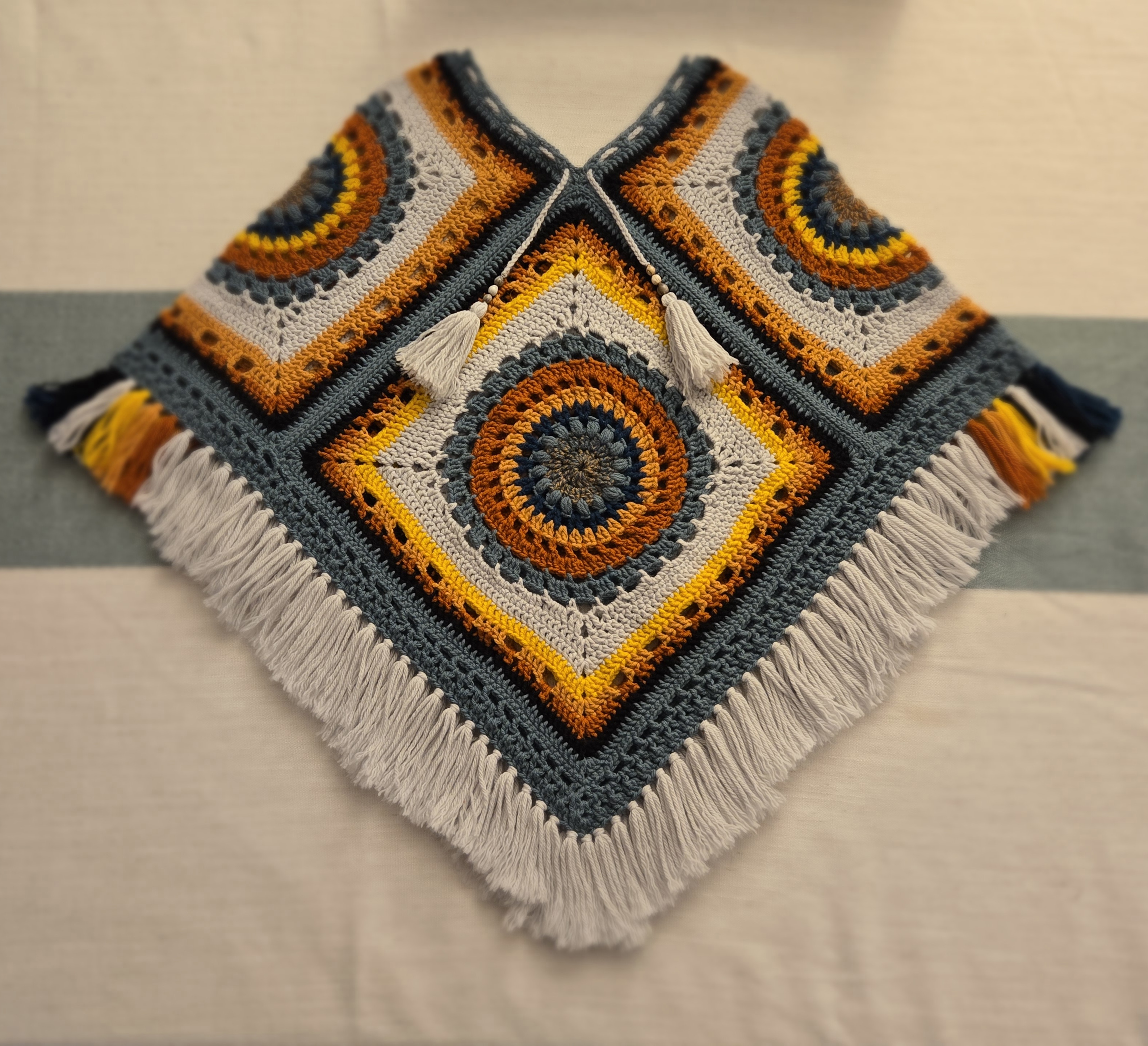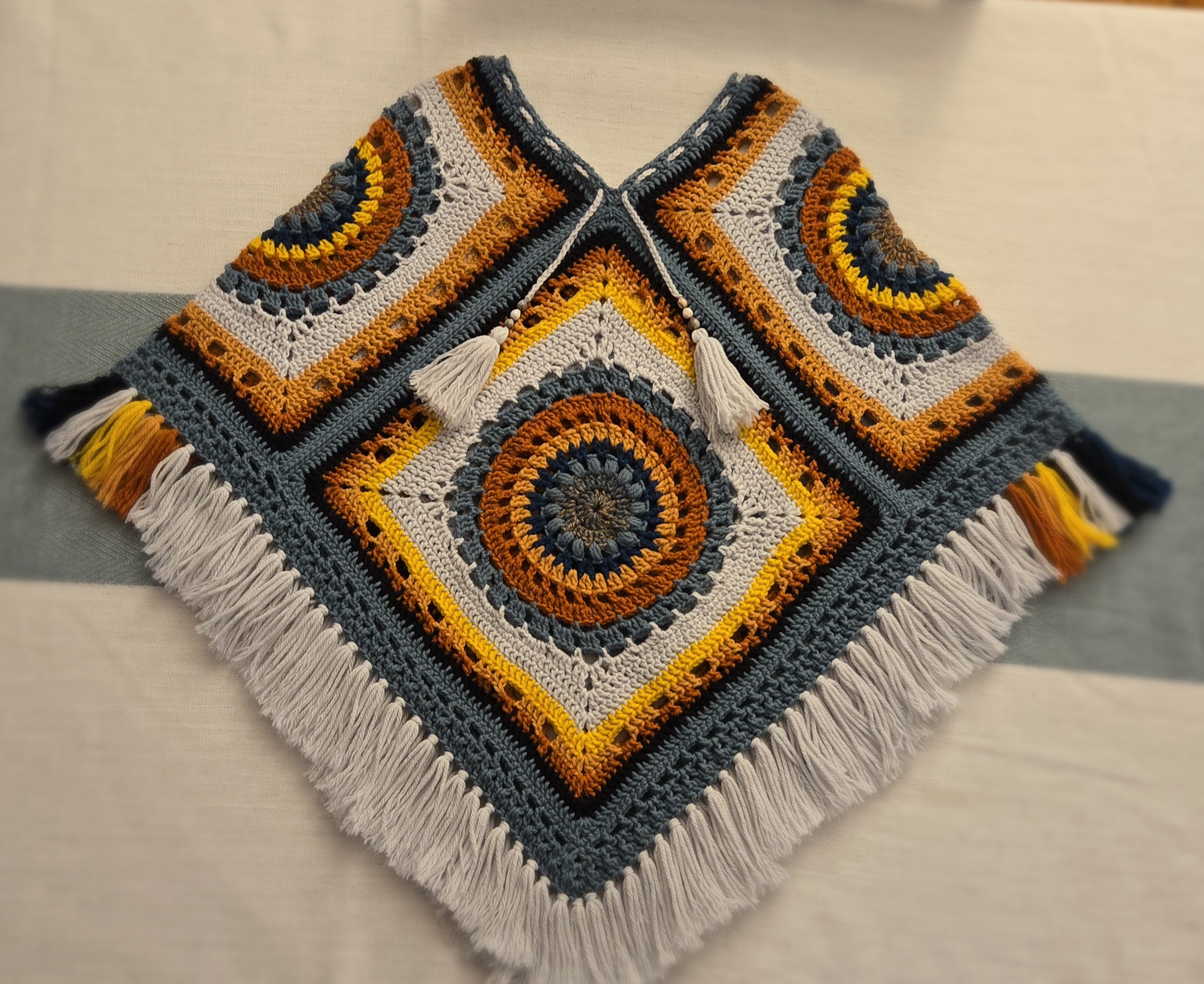 Handmade Crochet Poncho with Medium Weight Thickness. Perfect for the fall season. Has an adjustable neck opening. Job's Tears grew in fields near our home and created childhood memories for my parents. Making such a small detail very special.