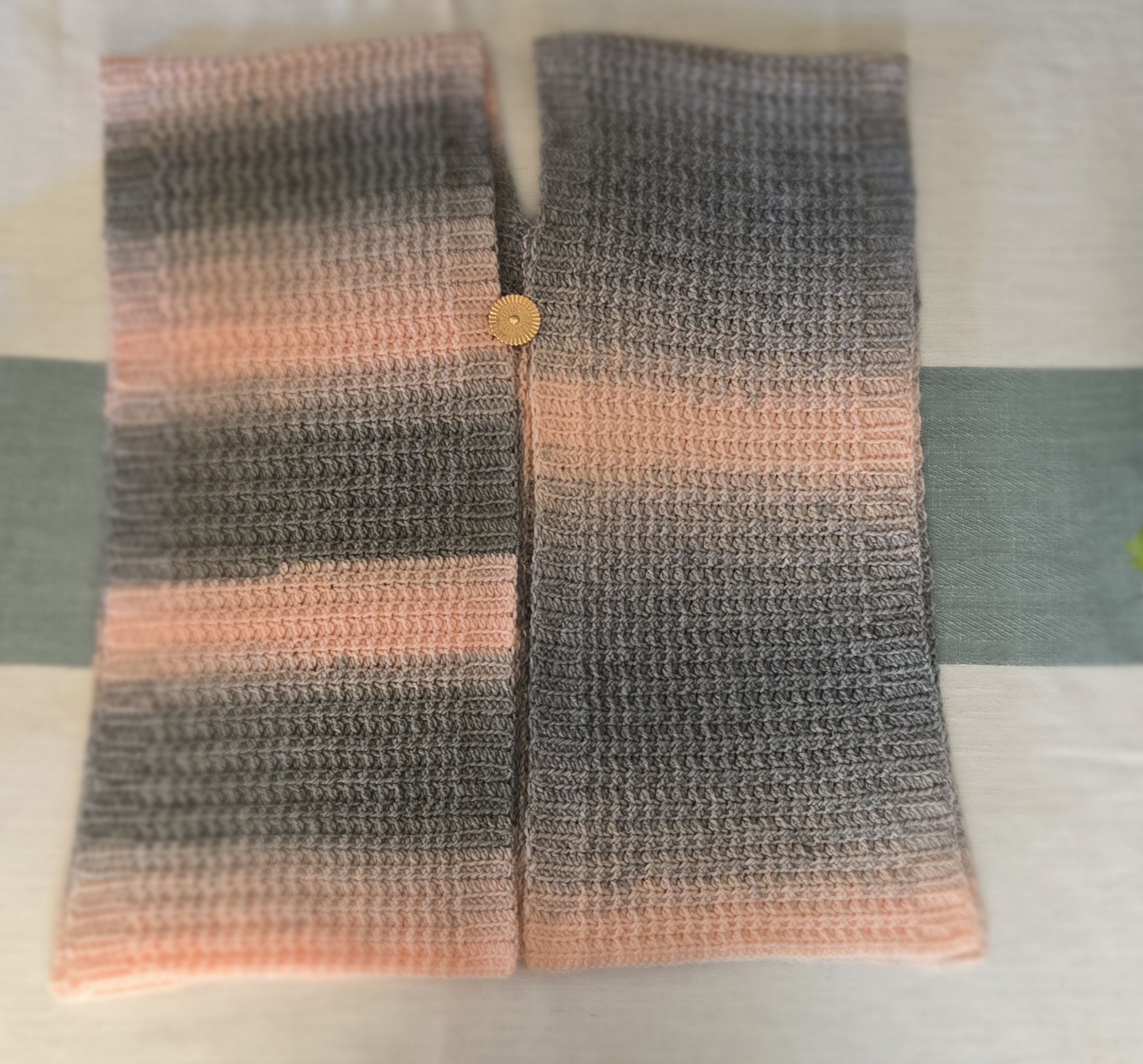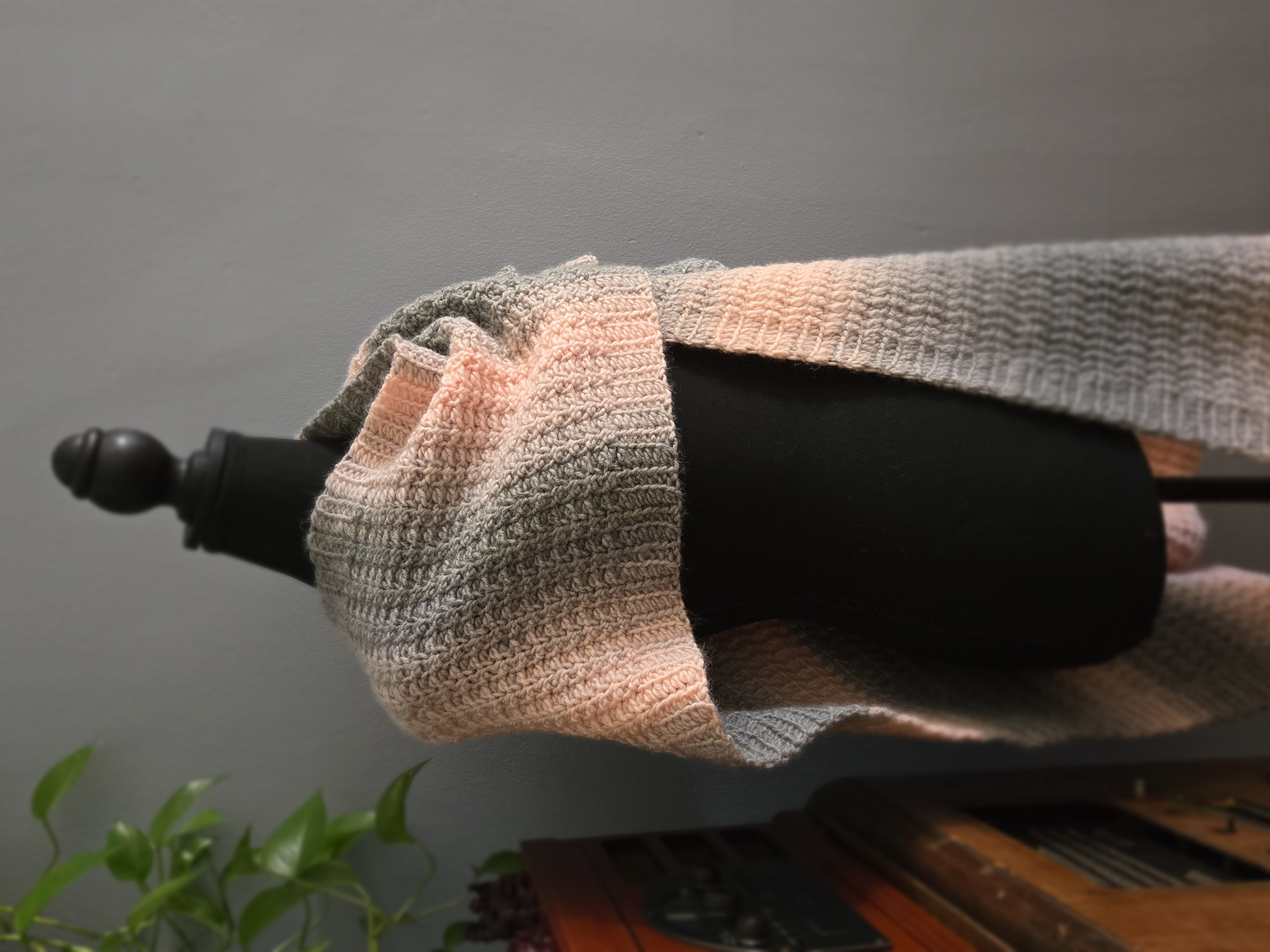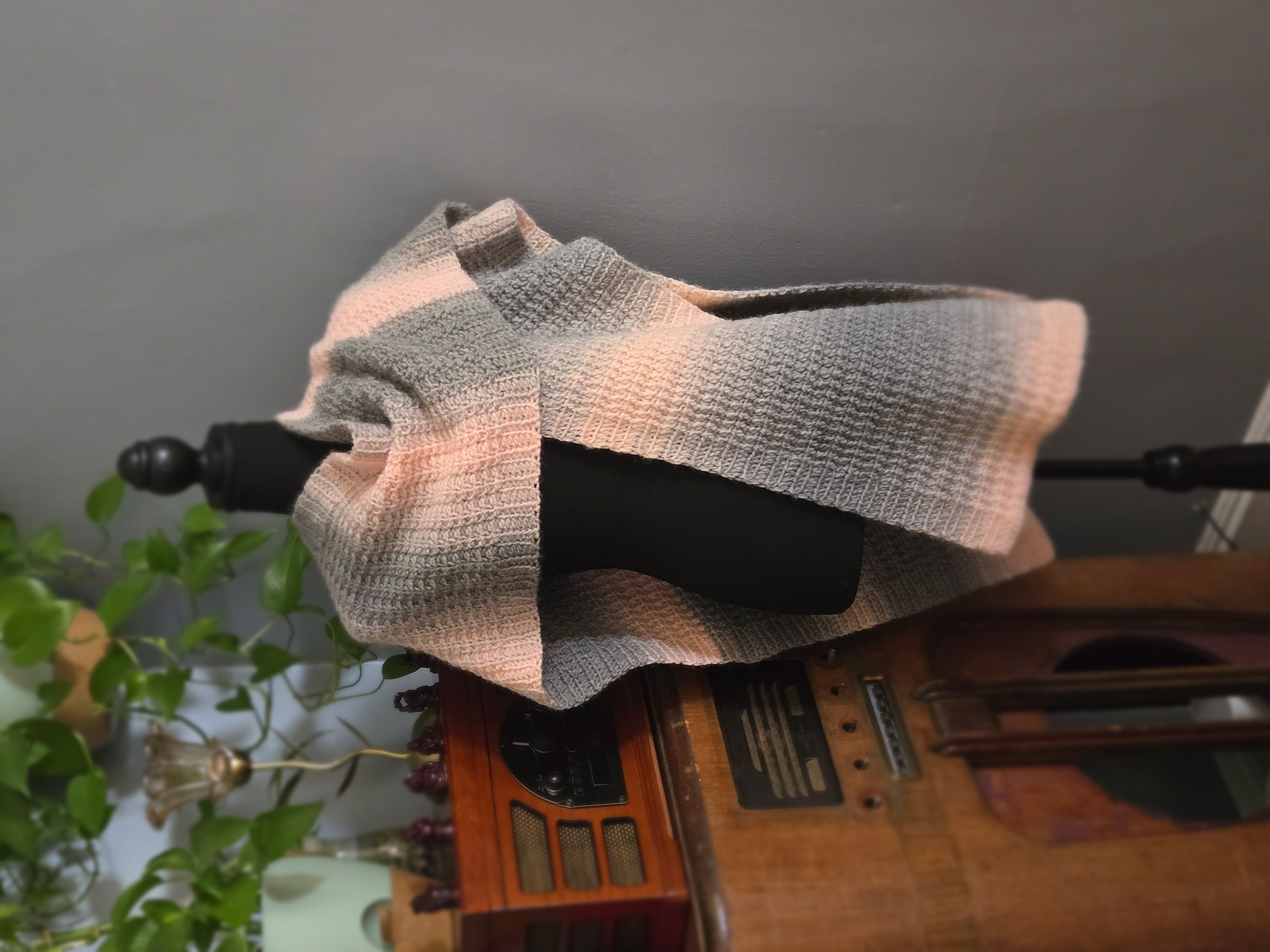 Blushing Pink Poncho is soft and warm with a Medium weight thickness. It can be worn two ways. As an open front Ruana or a shawl garment. A gold color Cinch Clip is included.