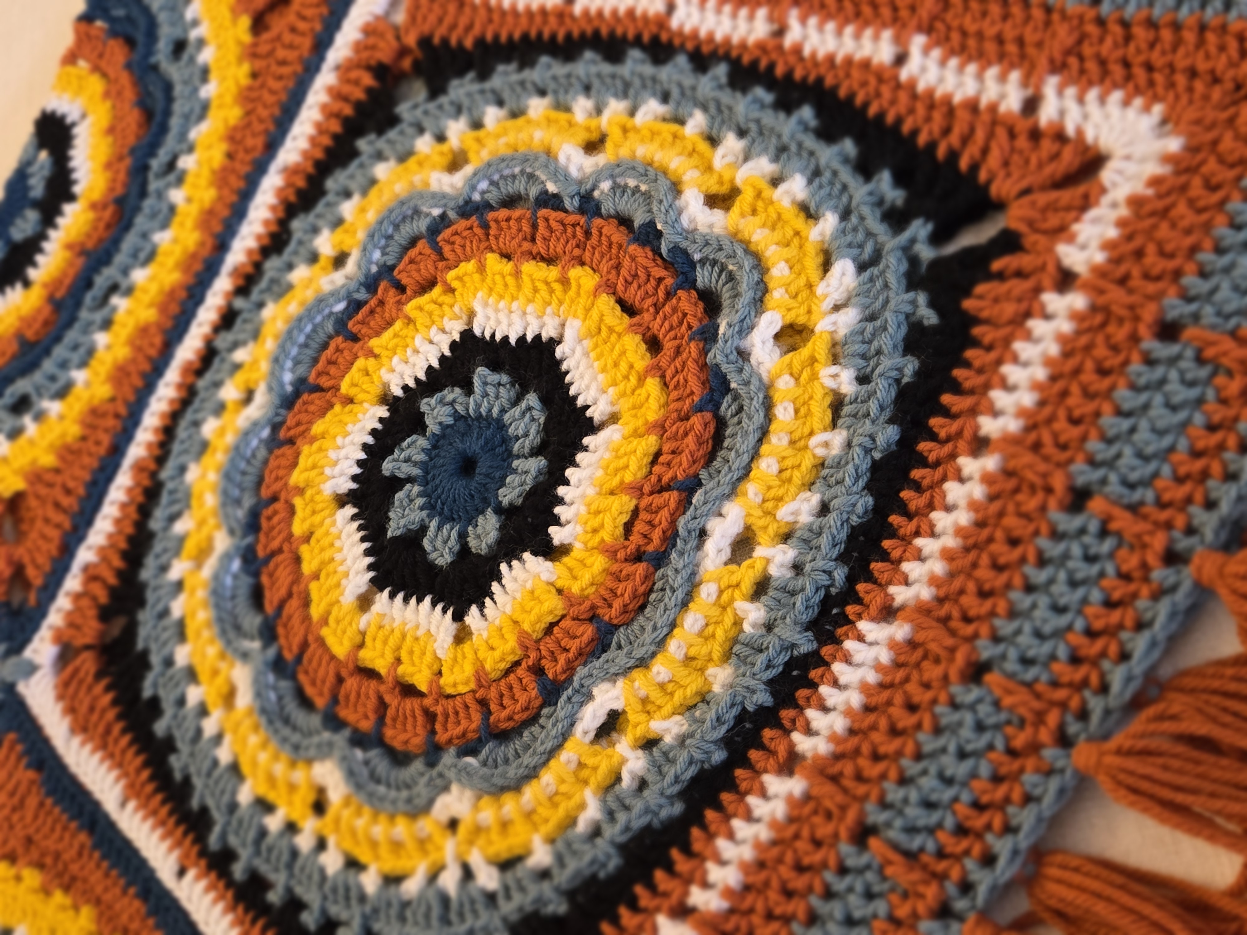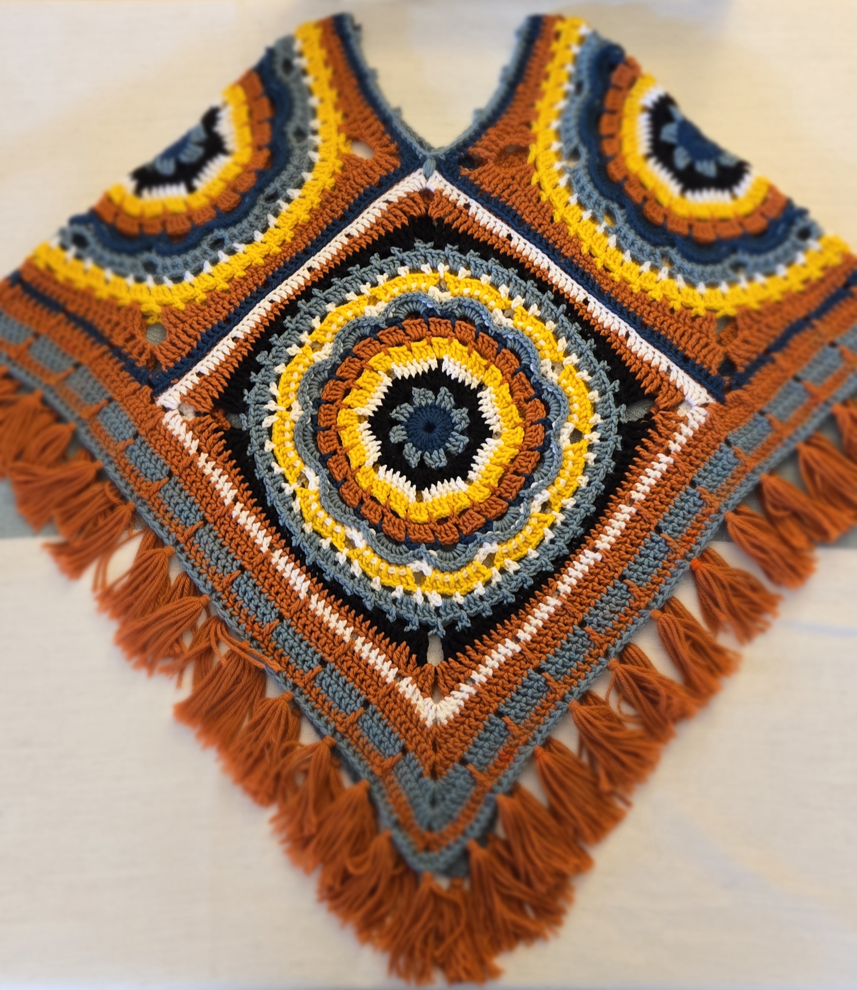 Desert Flower is a beautiful mandala style poncho with textured stitches.