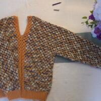 Handmade Crochet Poncho with adjustable neck opening. Has a light weight thickness. The filet crochet pattern displays Dragonflies. It is also intertwined with a metallic yarn that gives it a sparkle effect.