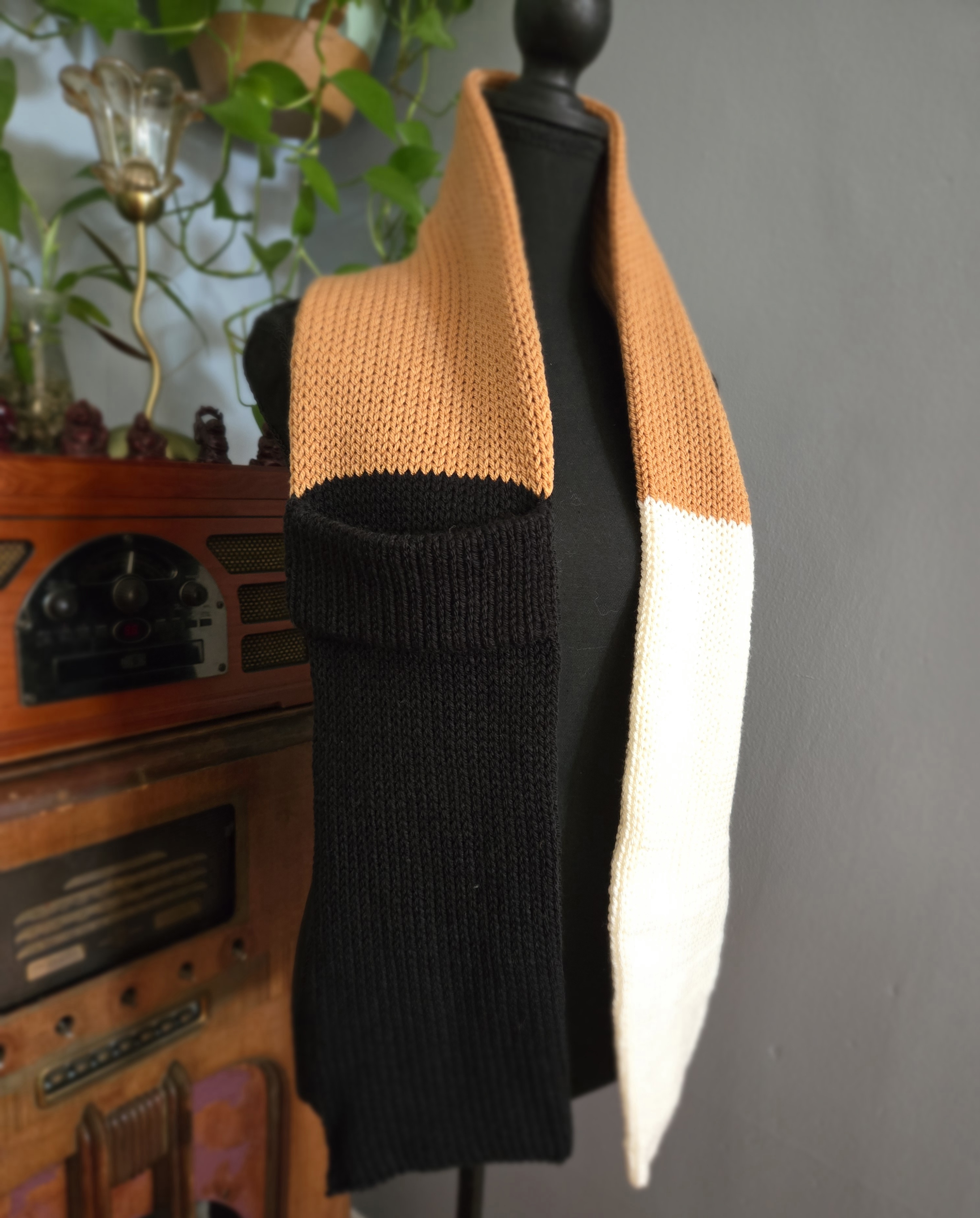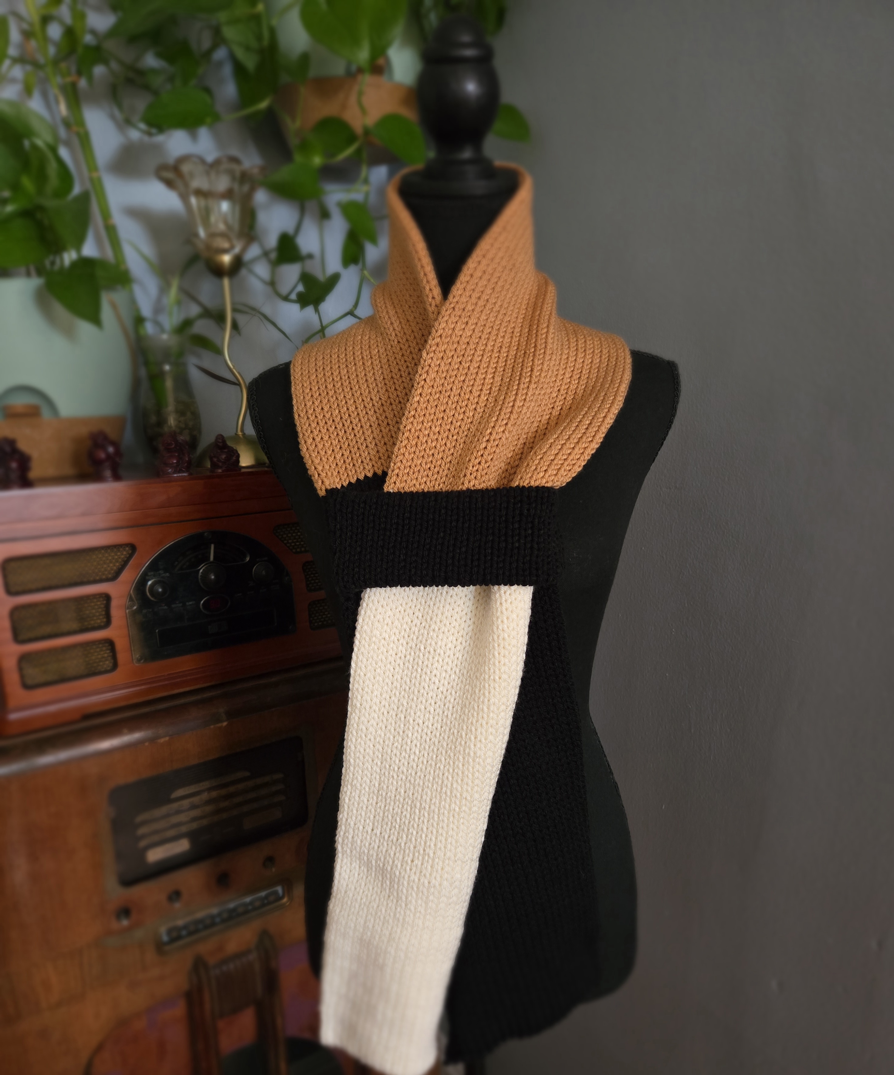 Latte Scarf is a warm and comfy knitted scarf.