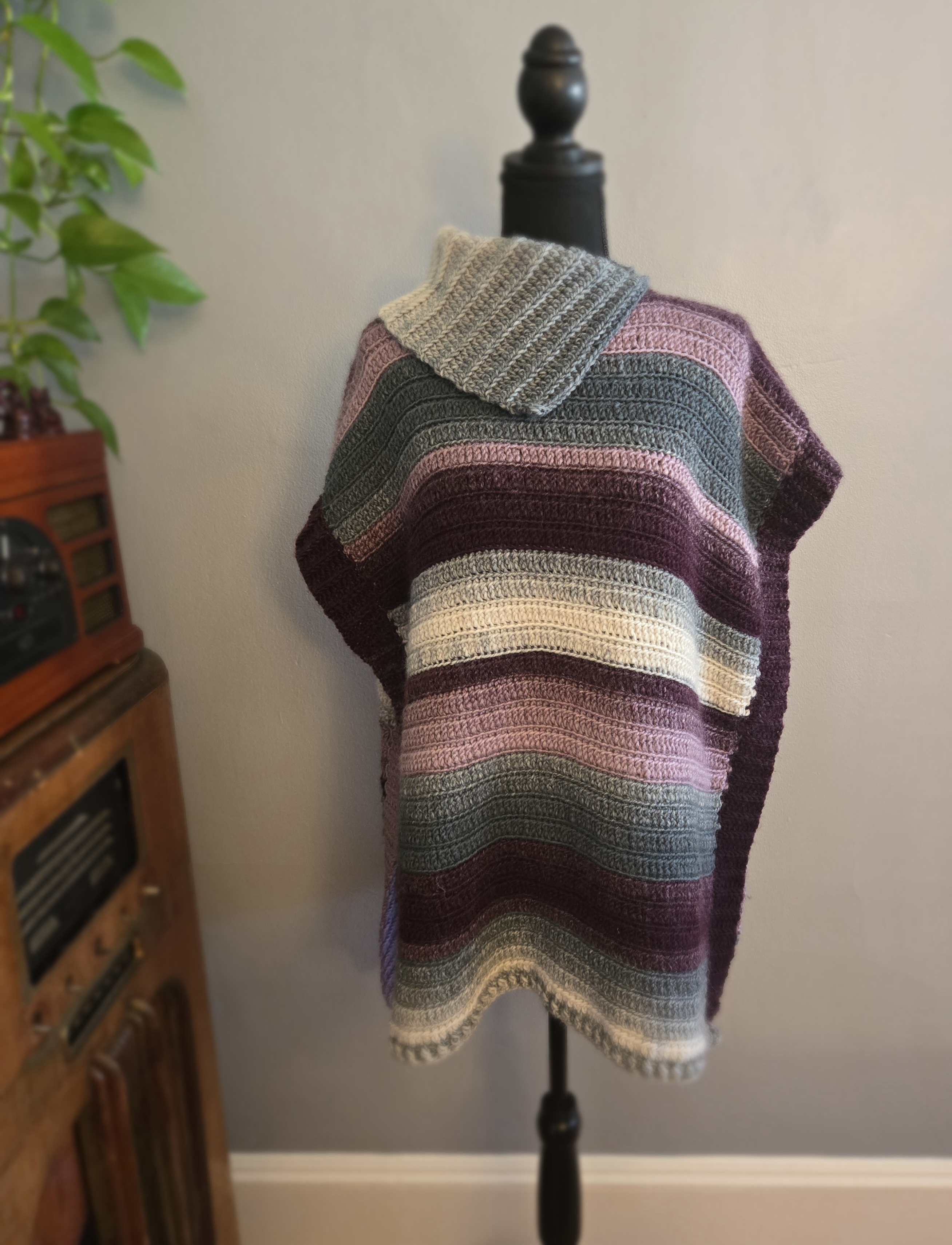 Handmade Crochet Poncho with a Medium Weight Thickness.