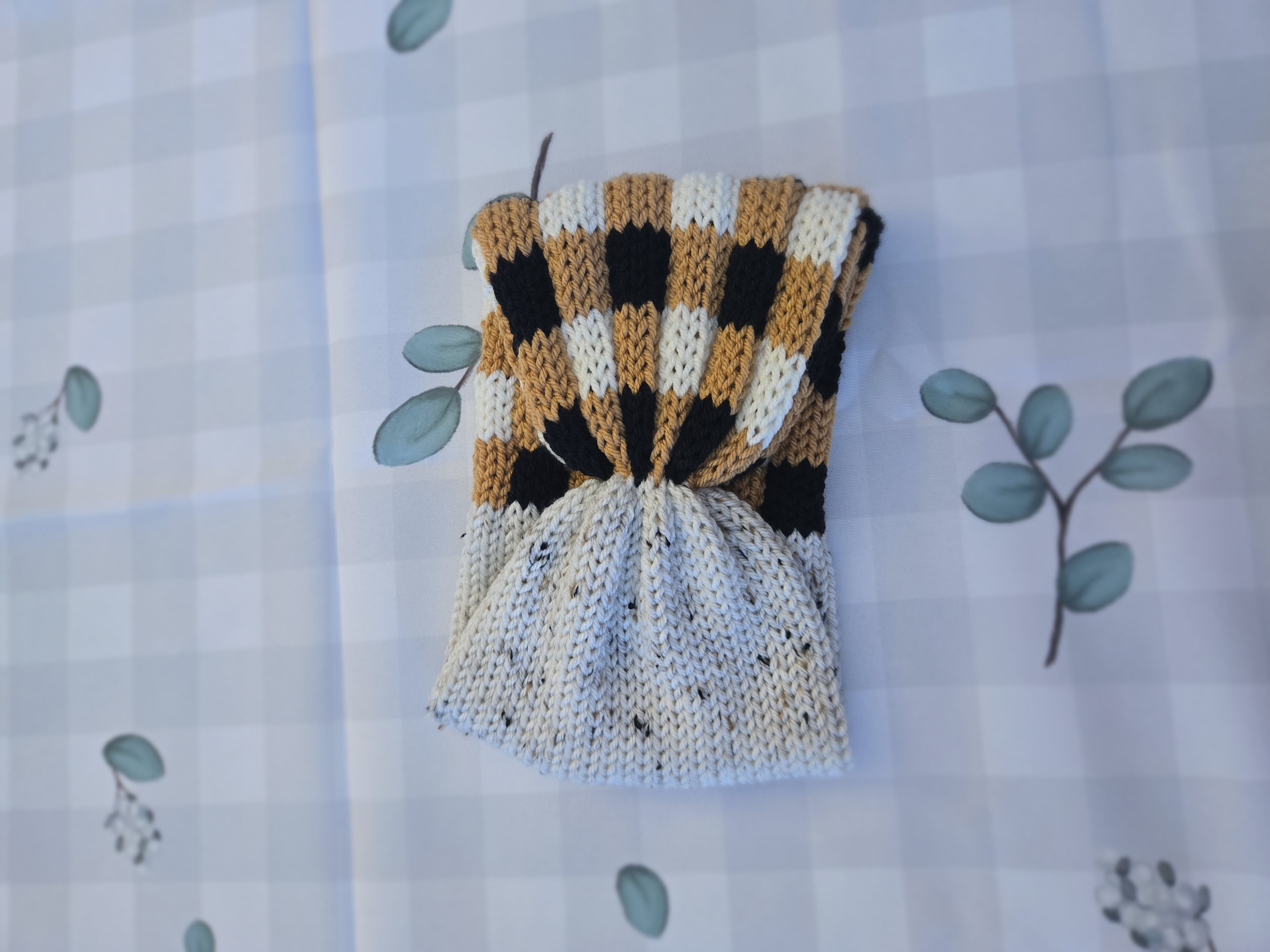 Knitted double layered super warm and chunky perfect for chilly Fall days.
