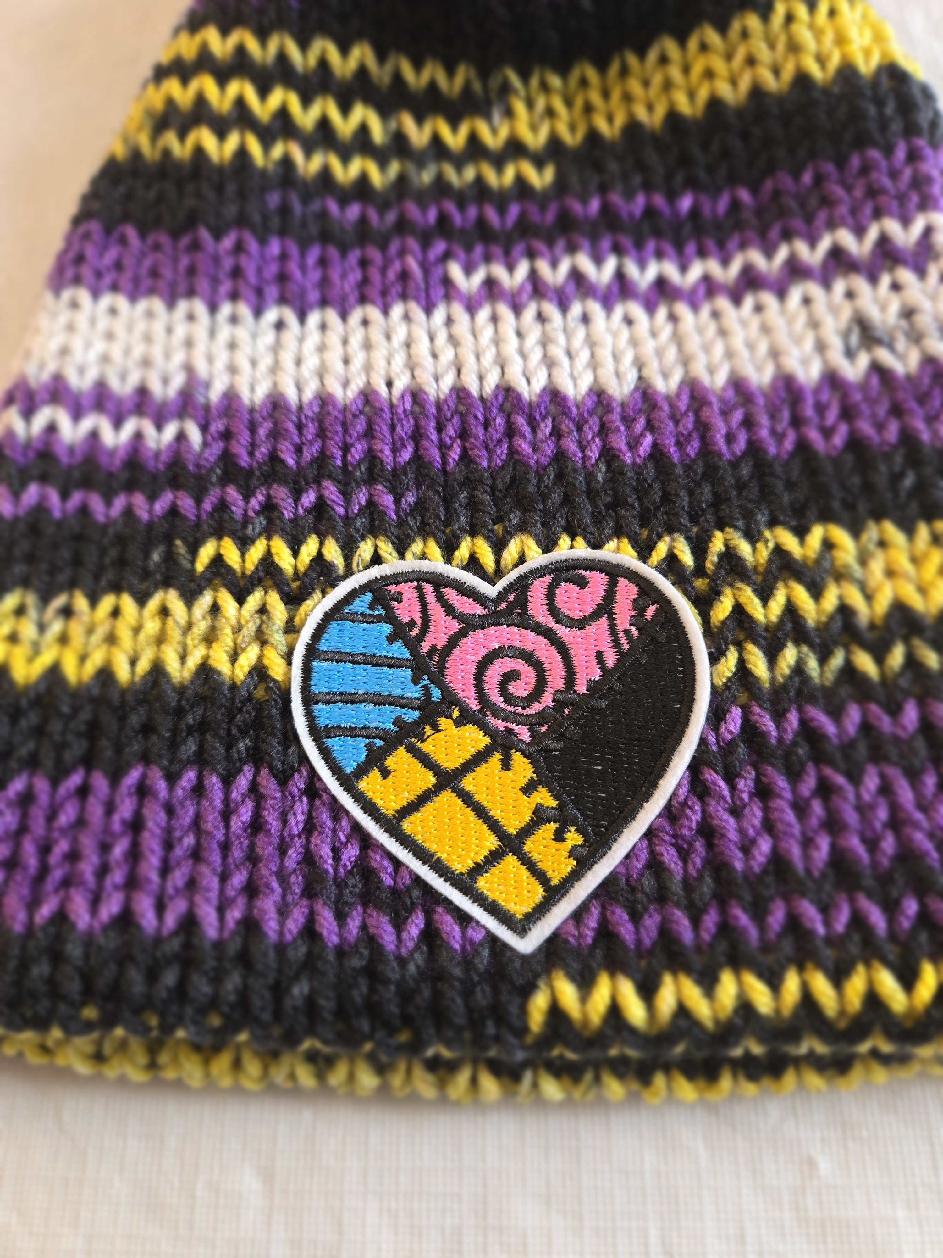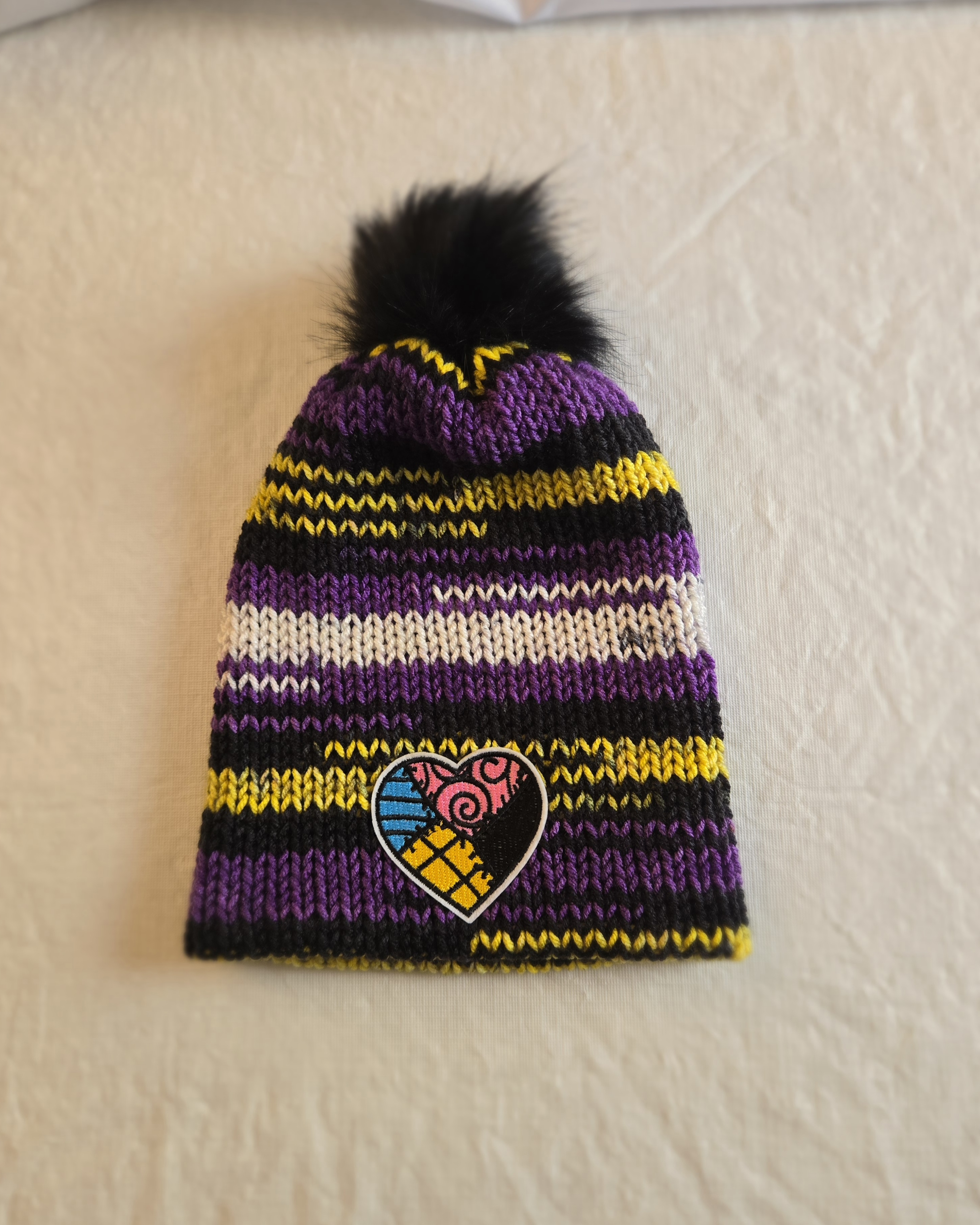 Double Knitted Beanie with Sally Inspired Heart. Removable pom pom included.