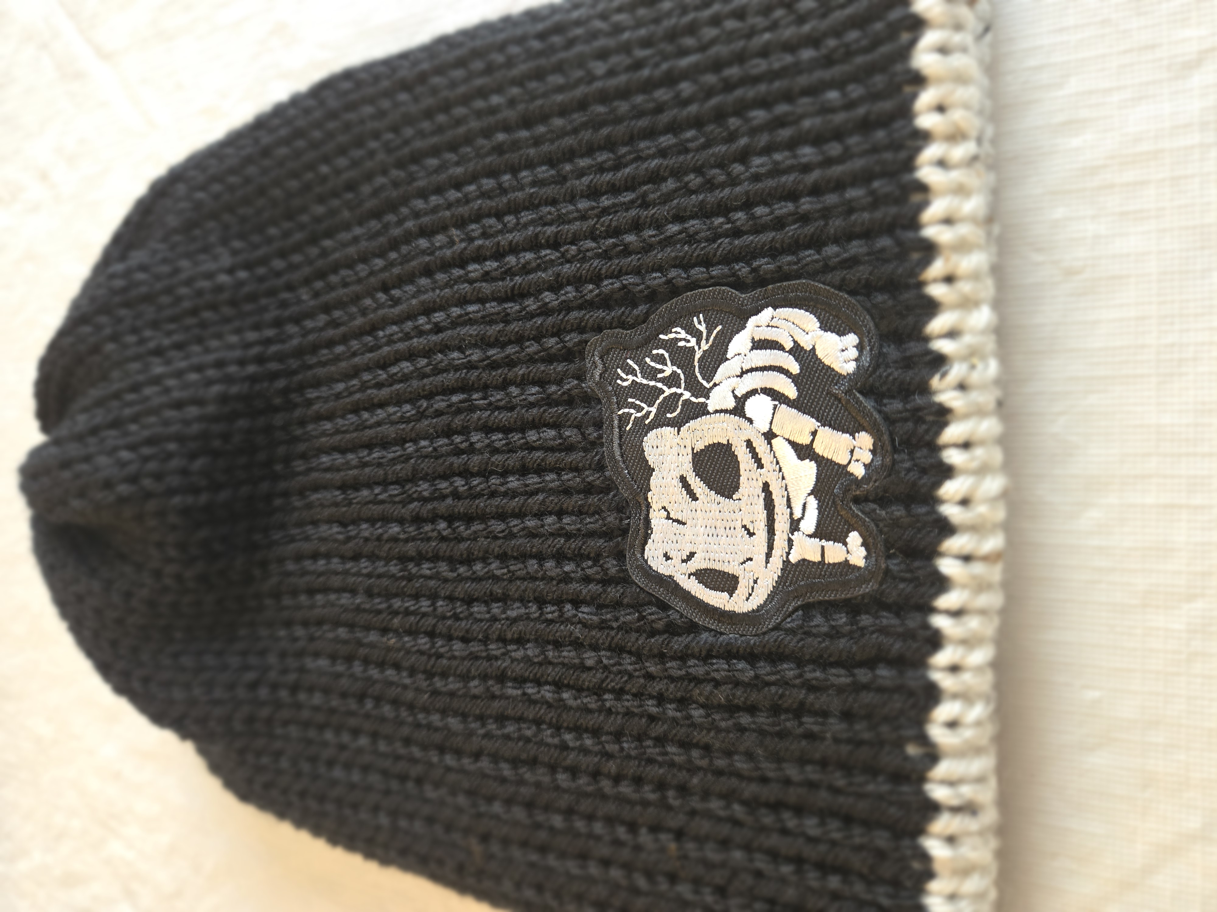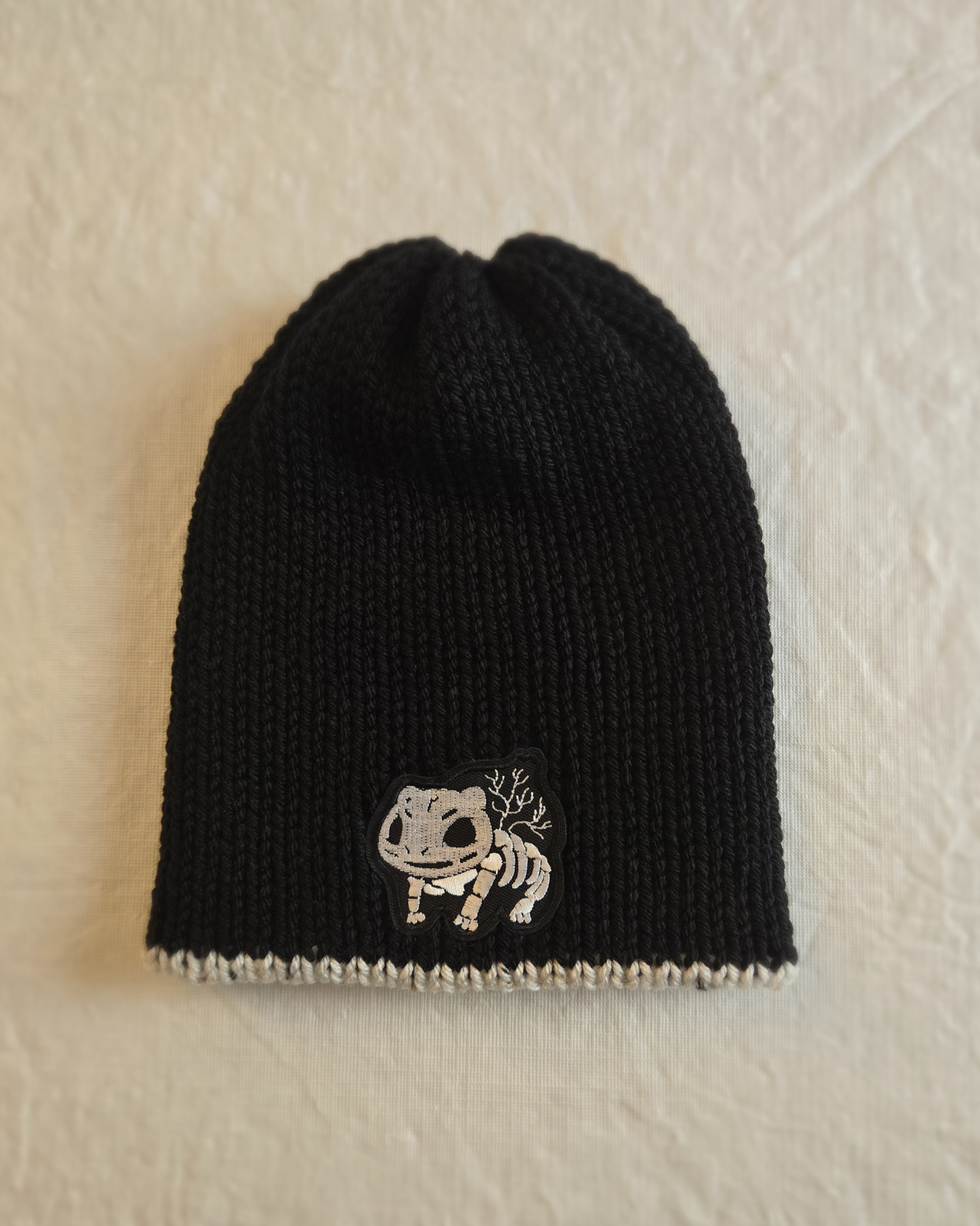 Black beanie with Bulbasaur Skeleton Halloween Patch.