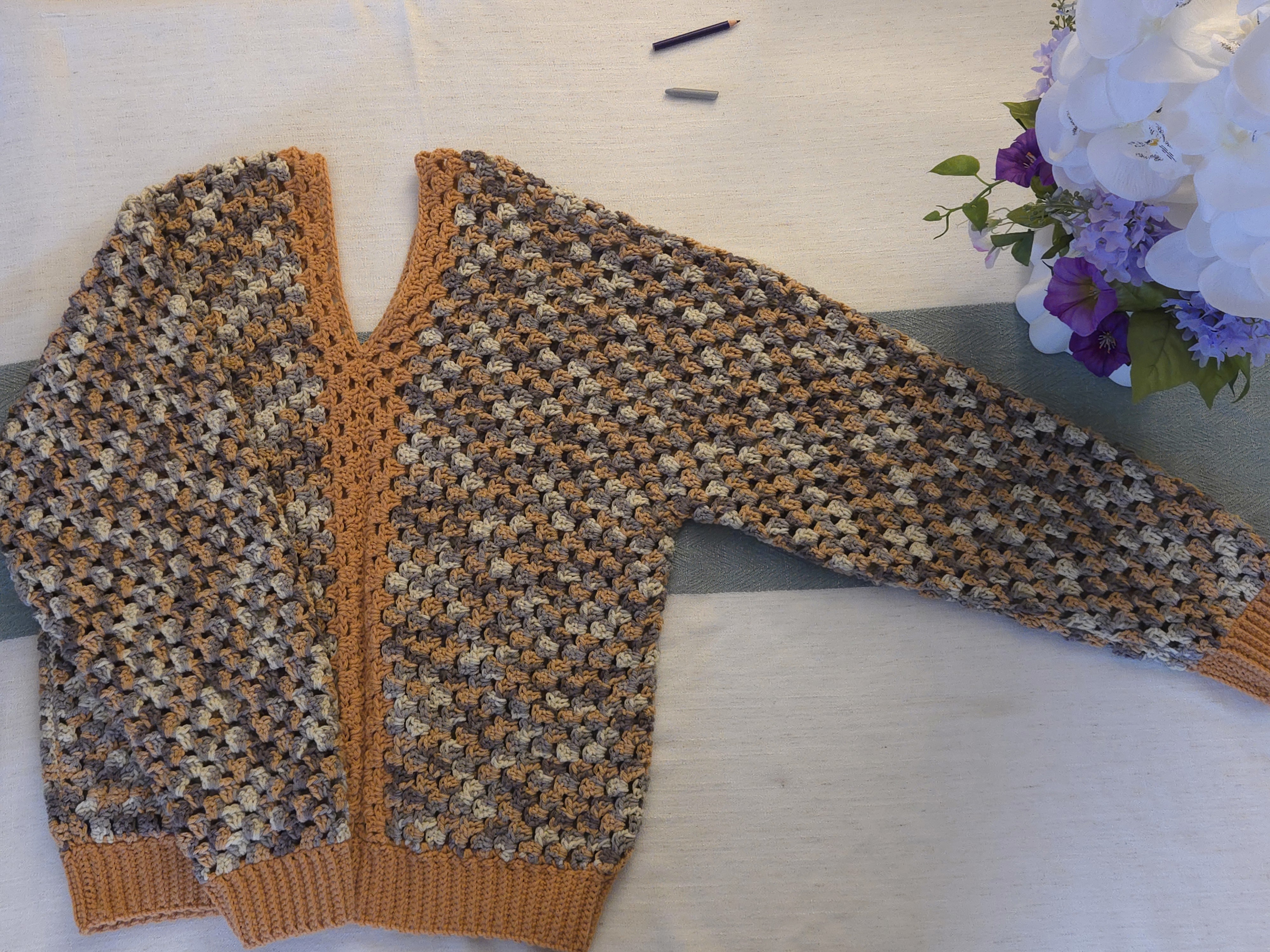Handmade Crochet. Cardigan is Medium Weight Thickness. Each Item is unique and no two are alike. Colors and yarns are chosen specific to pattern. It is rare for me to make duplicates, and/or items in different sizes unless requested.